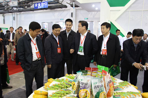 在開幕式之前,在臧薪宇總經理的陪同下,農業部種子管理局局長張延秋,吉林省農委主任李國強,全國農技推廣中心書記杭大鵬、全國種子協會領導及各省種子管理站(局)等領導蒞臨公司展區參觀,在仔細察看品種,了解品種對比優勢后,對公司在科研創新和產品推廣方面給行業和社會做出的積極貢獻給予了高度贊賞。